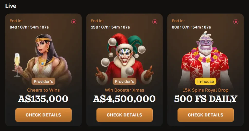 Every week, we make selected promotions available to our existing users. These are not automatic: each bonus includes its own rules, its own crowngold promo code, deposit requirement, and wagering terms. Weekly offers provide rotating access to crowngold casino free spins, reload packages, and seasonal variants. Validity dates are visible in the promotions section and must be followed precisely to activate benefits.